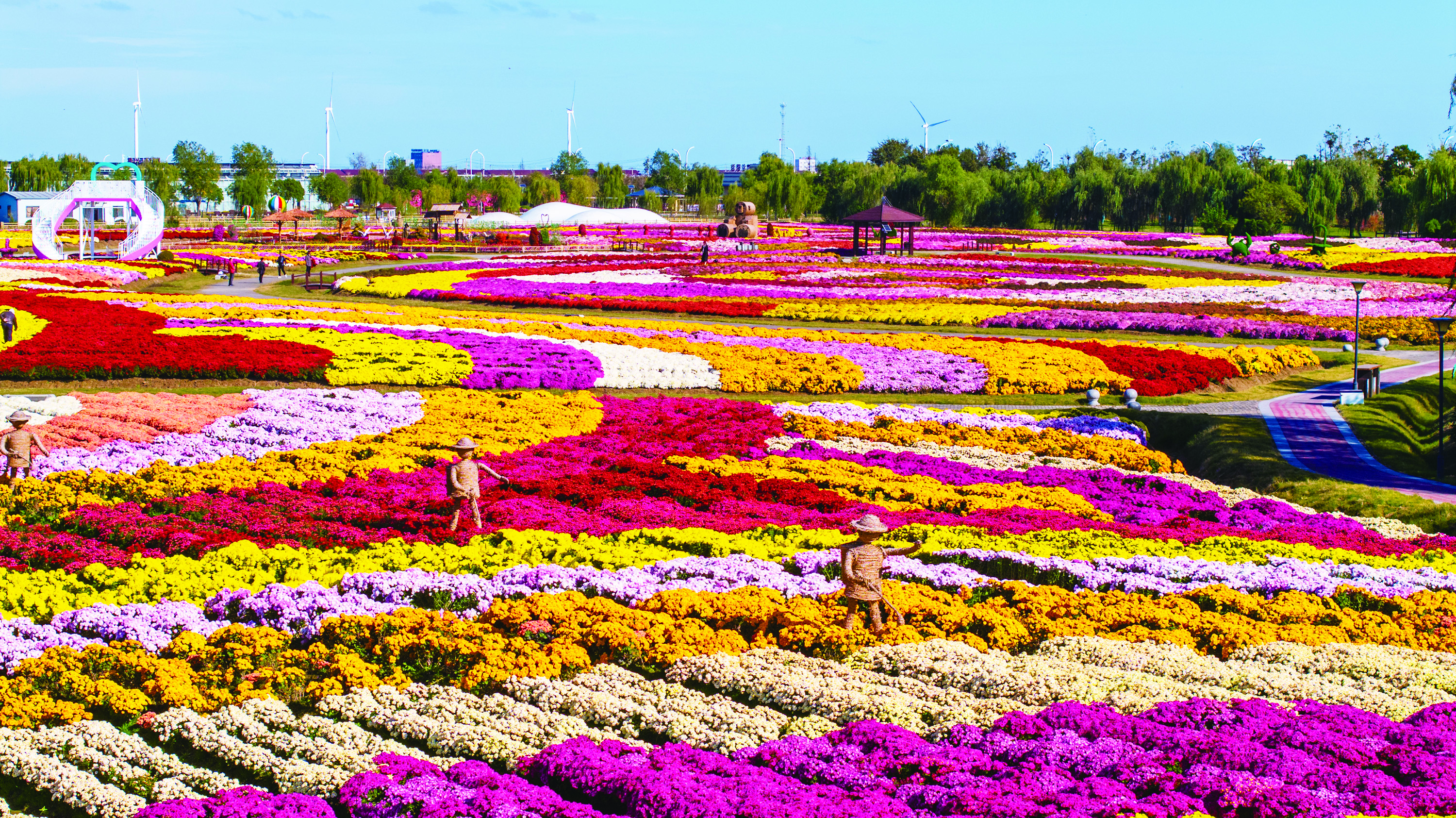 初冬时节,洋马镇鹤乡菊海景区一派色彩斑斓的景象,宛如一幅精美的季节画卷。放眼望去,造型各异的菊花争奇斗艳,美不胜收。
